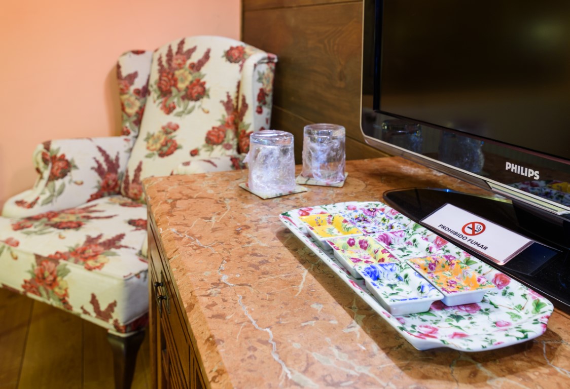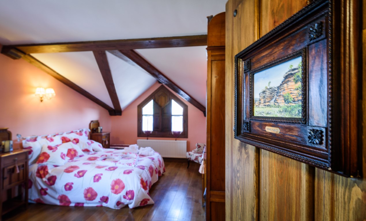 Su decoración de aspecto rústico, con detalles en forja y madera y su ambientación en tonos naturales, hacen de esta estancia un lugar propicio para el descanso.